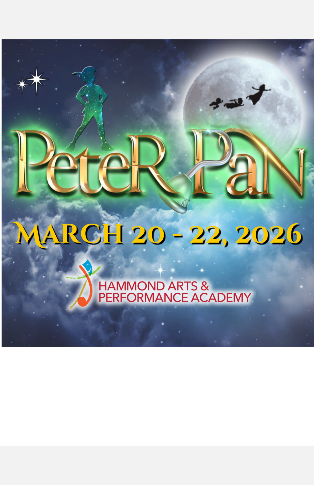 Featuring the iconic songs, "I'm Flying," "I've Gotta Crow," "I Won't Grow Up" and "Never Never Land," and a rousing book full of magic, warmth and adventure, Peter Pan is the perfect show for the child in all of us... who dreamed of soaring high and never growing up. Peter Pan is a dream come true for theatres looking to spread their technical wings and entertain countless families.